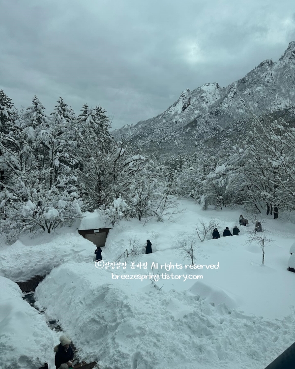 - 주요 포인트: 전나무 숲 설경, 고즈넉한 사찰 분위기, 눈 내린 길의 정적