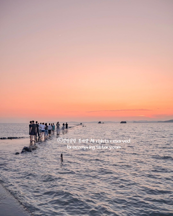 서울근교 드라이브 코스 추천하고 싶은 가장 큰 이유는, 바다를 보기 위해 오래 걷지 않아도 된다는 점이에요. 주차장에서 바로 연결되는 해변 덕분에 차 안에서 내리자마자 펼쳐지는 풍경이 마치 목적지를 통째로 선물처럼 안겨주는 느낌이었어요. 밀물과 썰물이 그리는 해변의 시간차 풍경도 인상 깊었고, 해질 무렵엔 햇살이 물 위로 길게 퍼져서 잠시 멍하니 앉아 있기에도 충분했죠. 꼭 놀지 않아도 괜찮고, 꼭 무언가를 하지 않아도 좋은 곳, 차 안의 대화와 라디오 음악만으로도 여름이 완성되는 해변이었습니다.