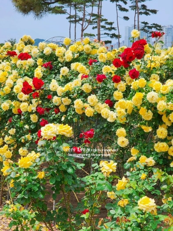 장미가 가장 아름답게 보이는 시간은 오후 늦은 시간대다. 해가 기울면서 꽃잎에 빛이 부드럽게 내려앉고, 바람이 불 때마다 꽃잎이 살짝 흔들리면서 향기가 은은하게 퍼진다. 붉은 장미만 있는 것이 아니라, 곳곳에 노란색과 분홍색 장미도 함께 피어나 있어 색의 조화가 아름답다. 산책길을 따라 벤치가 마련되어 있어, 잠시 앉아 강바람을 맞으며 장미 향을 맡으면 기분이 한결 차분해진다.