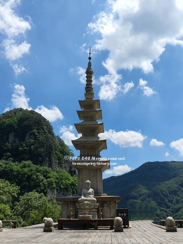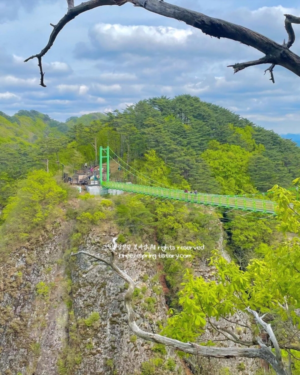 등산을 하다 보면 곳곳에서 바람 소리가 다르게 들린다. 나무가 빽빽한 구간에서는 부드럽게 스며드는 소리지만, 돌길이 시작되는 지점에서는 메아리처럼 울린다. 하늘다리를 건널 때 아래를 내려다보면 가슴이 서늘해질 만큼 깊은 계곡이 펼쳐진다. 바람이 강하게 불 때가 많아, 다리를 건너는 순간만큼은 발걸음을 조심스럽게 떼게 된다. 정상에서는 봉화 일대의 산들이 겹겹이 이어지는 모습이 보이는데, 봄날의 맑은 하늘과 맞닿아 있어 한참을 바라보게 된다. 산을 내려올 때는 청량사에 잠시 들러 나무 아래에서 숨을 고르며, 이곳만의 차분한 분위기를 느껴보자.