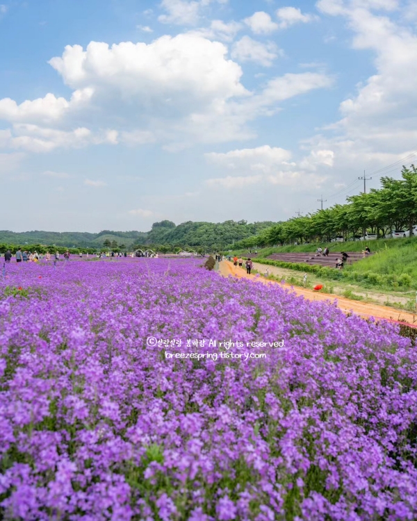 공원 안쪽으로 들어가 유채꽃밭 사이로 난 작은 길을 따라 걸으면, 꽃 사이로 미세하게 흔들리는 바람이 느껴진다. 보랏빛 유채꽃은 개화 시기가 길어 5월 초까지도 충분히 감상할 수 있고, 그 사이 장미가 본격적으로 피어나기 시작하면 꽃길이 더욱 꽃길이다.