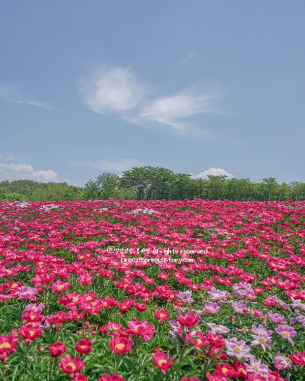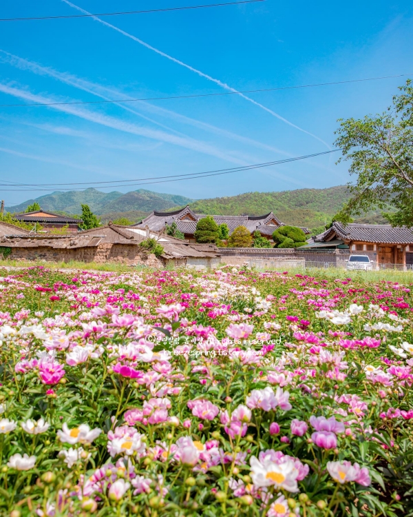 영천은 국내 최대의 작약 재배지로, 매년 5월이 되면 분홍빛 작약이 들판을 가득 메우는 영천 작약꽃축제는 지역에서 재배한 작약을 활용한 한방 체험과 농산물 직거래 장터까지 함께 열린다. 축제가 열리는 보현산 약초식물원과 정각리 일대는 수천 평의 들판이 모두 작약으로 뒤덮여 있어, 어디서든 시선을 돌리면 부드러운 연분홍빛이 가득하다. 작약은 해가 지면서 점점 더 깊은 색감을 띠기 때문에, 늦은 오후에 방문하면 한층 더 풍부한 색을 감상할 수 있다.