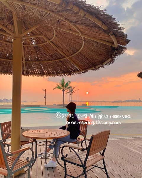 3년만에 재오픈하는 리버뷰 해수풀로 동남아 느낌 낭낭한 이국적인 수영장입니다. 해질 때, 더 이상의 설명이 필요없는 곳으로 정말 아름다운 장소죠. 배곧한울공원은 바다가 보이는 놀이터, 바다가 보이는 산책길로 유명하지만 '청춘기록' 촬영지로 더 유명해진 곳이에요.