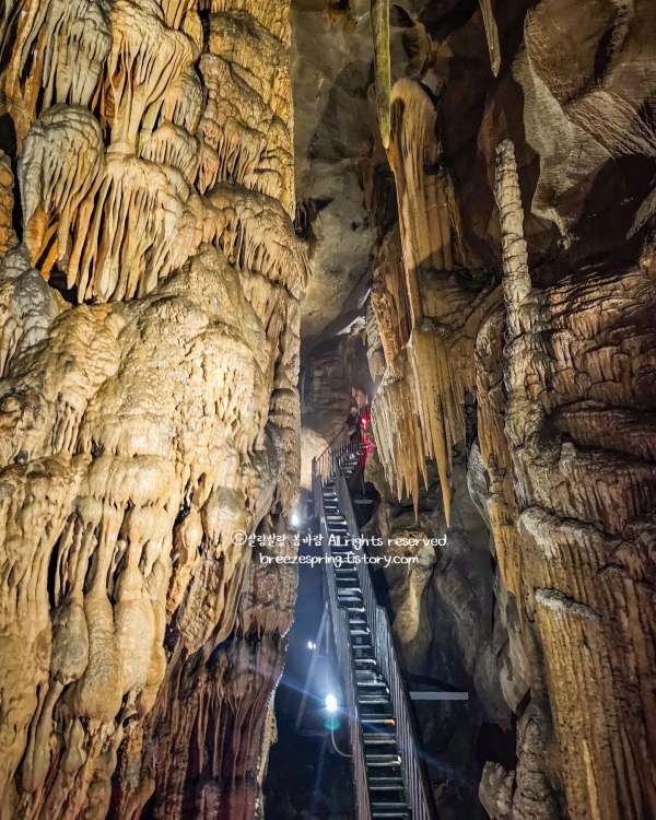 총 700여 개의 계단이 있지만, 그만큼 길도 다양하고 동선도 꽉 차 있어서 40분 정도 걸려도 전혀 지루하지 않아요. 가우디가 영감을 받았다는 말이 허투루 들리지 않을 만큼, 구조 하나하나가 기묘하게 조화를 이루고 있고요. 계단 오르락내리락하면서 잠깐 숨은 차도, 웅장한 동굴 안의 정적에 묻혀서 오히려 마음이 차분해져요. 단양이 왜 유네스코 세계지질공원인지, 왜 고수동굴이 ‘꼭 봐야 할 곳’인지 — 이곳 안에 들어서면 단박에 알게 됩니다.