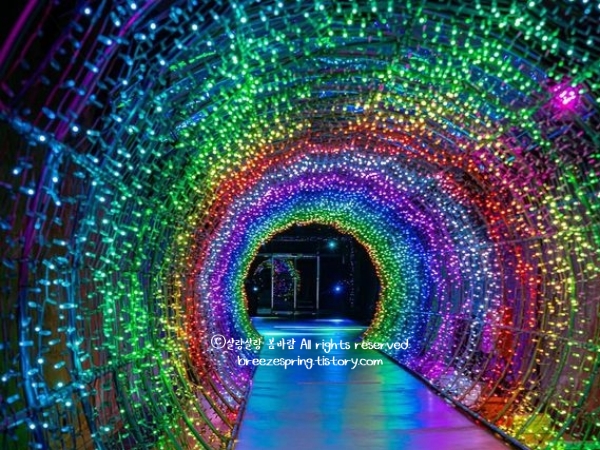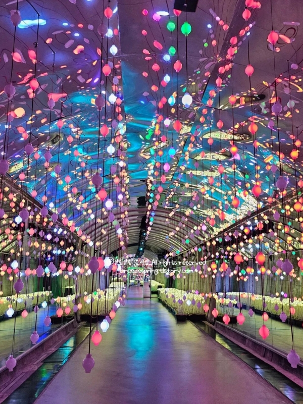 수양개 빛터널은 단양에 이런 분위기 있는 밤이 있었나 싶을 정도로 색다른 공간이에요. 초반에 실내 전시관은 살짝 정적인 분위기지만, 터널로 들어서는 순간 완전 다른 세상이 펼쳐져요. 음악이 쿵쾅쿵쾅, 조명은 총천연색으로 쏟아지고 — 진짜 마지막엔 “클럽인가?” 싶을 만큼 분위기 확 살아나요.
