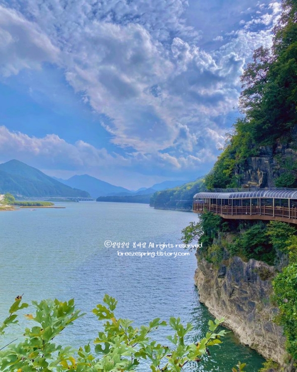 만천하스카이워크 바로 옆이라 충북 단양 가볼만한곳 베스트 10 코스 연계가 정말 좋아요. 주차장도 공유하고 있어서 차 한 번 세우면 잔도 + 스카이워크까지 다녀올 수 있고요. 이 길은 무료라는 게 더 놀라워요. 강 따라 걷다가, 고개를 들면 산이 있고, 아래엔 유유히 흐르는 강이 있고. 걷기만 해도 머릿속이 정돈되는 그런 길.