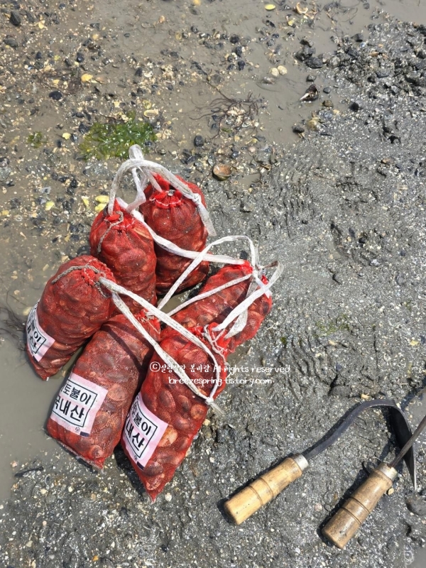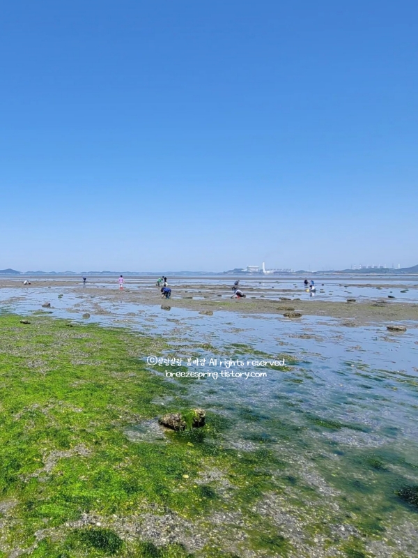 바지락이 이렇게 쉽게 잡힐 줄 몰랐다. 손으로 몇 번 파보니 바지락이 주르륵 쏟아져 나와 아이도 어른도 신이 났다. 평일이라 체험객이 거의 없었는데, 덕분에 거의 ‘우리만의 갯벌’에서 마음껏 놀 수 있었다. 직원분도 친절하게 체험을 도와주셔서 처음 하는 바지락 캐기도 어렵지 않았다. 게도 뛰어다니고, 작은 물고기들도 여기저기 보였는데, 덕분에 생태 체험을 하는 느낌이었다.