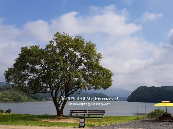 이곳의 장점은 경사가 완만하다는 것. 아이들과 함께 걷기에도 부담이 없고, 노약자도 편하게 걸을 수 있는 길이었다. 한여름에도 호수를 따라 부는 바람 덕분에 그늘진 구간에서는 꽤 시원하게 걸을 수 있었다. 걷다 보면 가느실 마을 주차장에서 시작해 자연스럽게 둘레길을 완주할 수 있는 구조라 초행길이라도 어렵지 않았다. 그리고 걷는 도중, 한눈에 들어오는 ‘청천호 카페 블루레이크’의 전망이 정말 예술이었다.