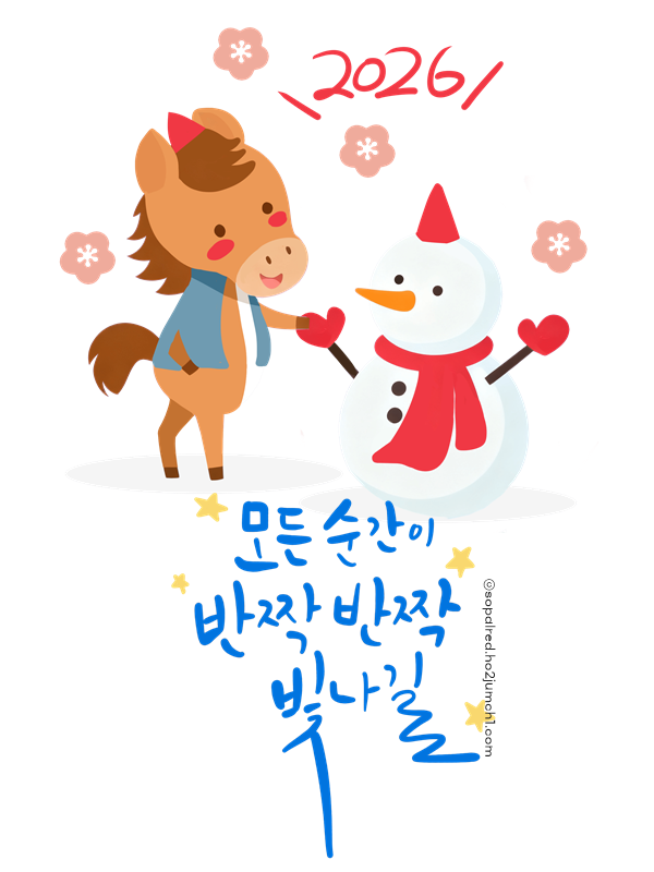 ♥ 지난 해 아낌없이 보내주신 관심과 따뜻한 응원에 깊이 감사드립니다. 2026년엔 새로운 희망이 자라고, 뜻깊은 결실이 가득하시길 진심으로 기원합니다. 늘 건강과 기쁨이 곁에 머무르기를 바랍니다.