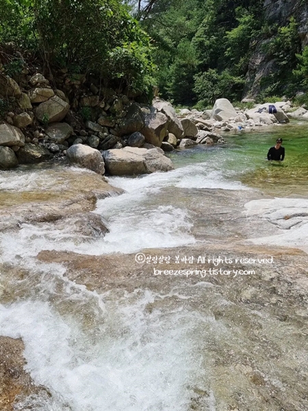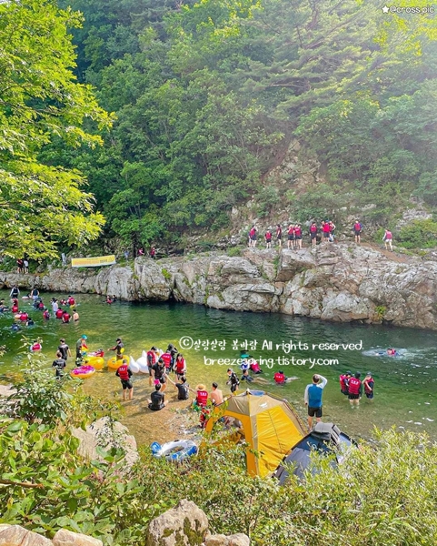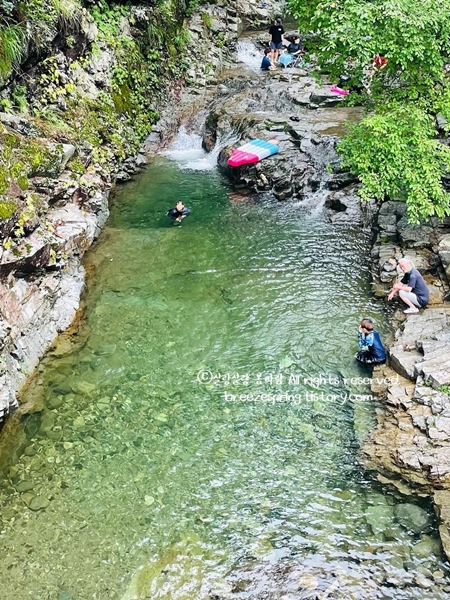 도마치계곡은 물놀이를 즐기기 좋은 수심 1m 정도의 아담한 물 웅덩이로 깎아지른 절벽이 둘러싸고 있어 풍경도 아름답고 아울러 용소 곁에는 지대가 약간 높은 곳에 텐트를 칠 수 있는 평평한 터도 군데군데 있어 선점 1순위로 꼽히는 물놀이 장소입니다. 사실 여기는 경기도 가볼만한곳 베스트 10 숨겨두고 싶은 명소입니다.