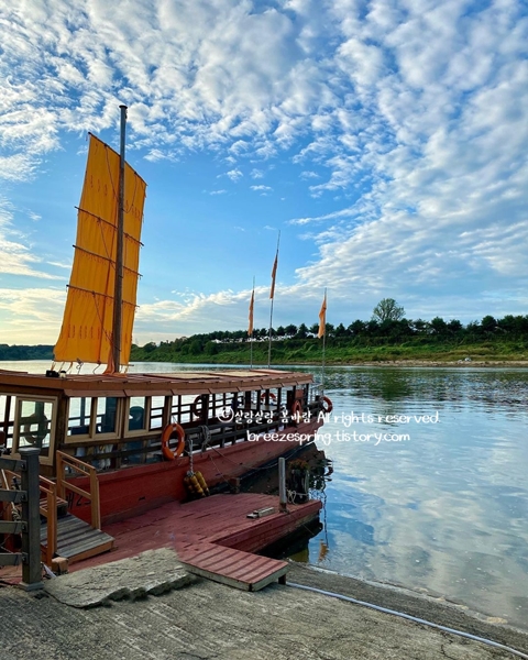 8인 이상시에 운항을 하며 1시간 간격으로 출발합니다. 오전 10시에 첫배가 뜨고 여름에는 오후 6시까지, 동절기에는 오후 4시까지만 운영합니다. 청소년부터 성인은 9000원, 경로와 소인은 7000원입니다. 조선시대 주요 운송수단이었던 황포돛배를 되살렸으며 화산폭팔로 만들어진 주상절리 감상과 임진강의 역사 해설을 함께 들을 수 있는 자연과 역사가 살아 숨쉬는 황포돛배는 잘 알려지지 않은 파주여행명소입니다