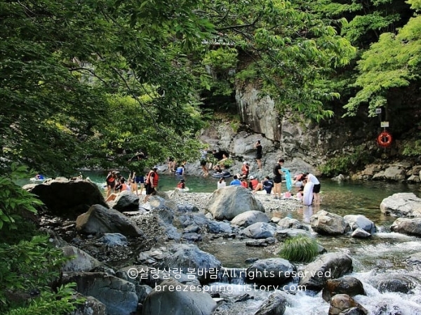 계곡 주변에 평탄한 바위가 많아 돗자리를 깔고 쉴 수 있는 공간이 많고, 자연 경관이 아름답습니다. 취사와 야영이 금지되어 있어, 간단한 도시락이나 간식을 준비해 가면 좋습니다.