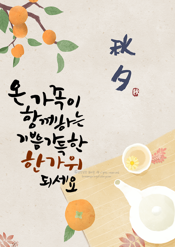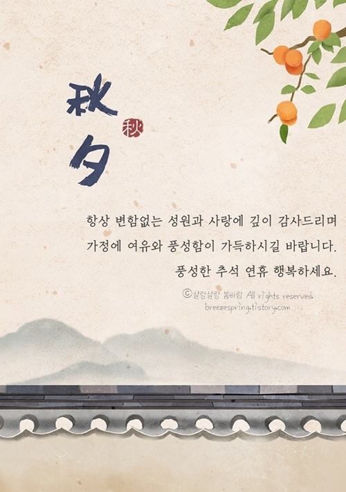 세상살이가 쉽지 않더라도 추석이 되면 온 가족이 모이고 친척들을 만나면서 어느새 마음이 훈훈해집니다. 지난 시간 힘들었던 일은 나누며 풀고, 웃음 속에서 다시 힘을 얻는 명절이 되시길 바랍니다. 앞으로 모든 일들이 술술 풀려가길 바라며, 건강과 정이 넘치는 따뜻한 연휴 보내시길 소망합니다.