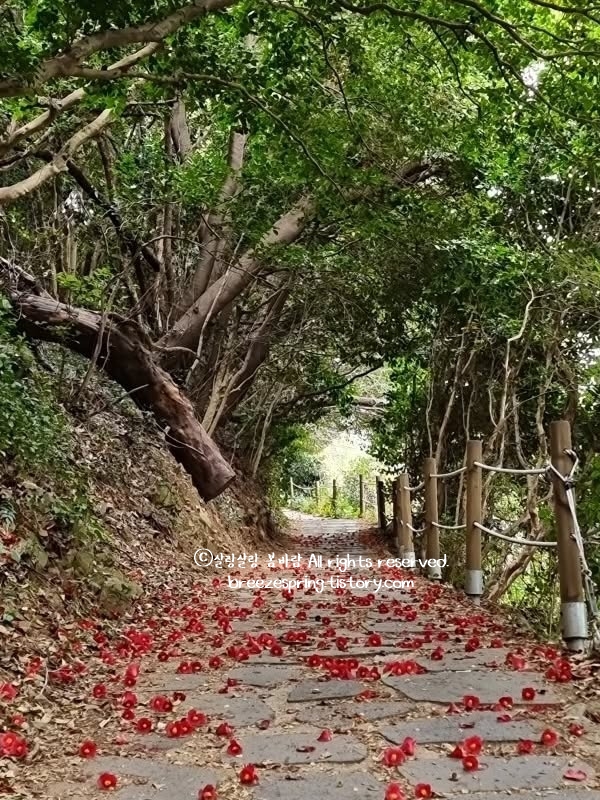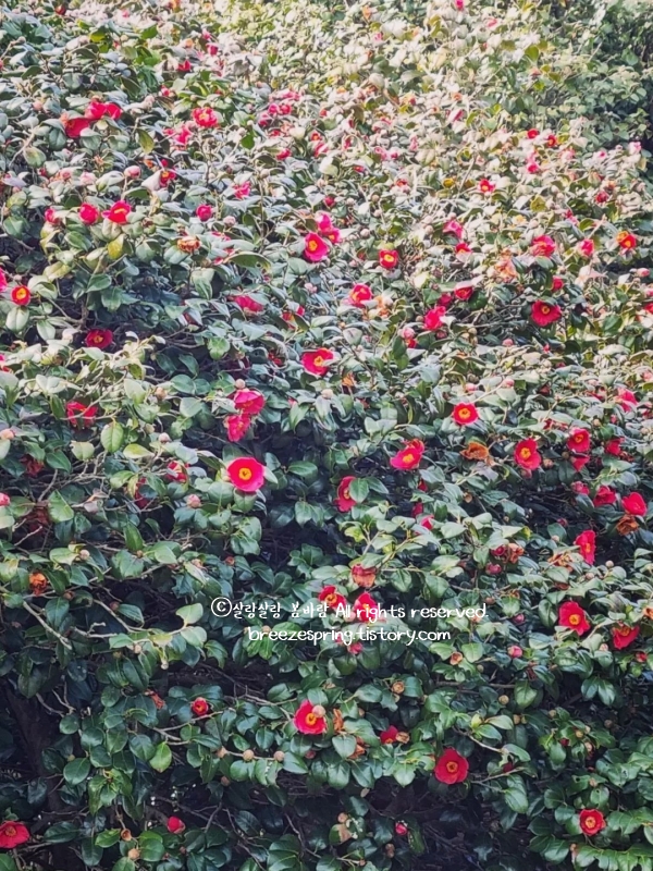 여긴 2월에 “꽃을 봤다”는 말을 하게 만드는 곳이에요. 동백이 길을 따라 계속 이어져서, 걸을수록 빨간색이 늘어납니다. 꽃이 가지에 붙어 있는 것도 좋았지만, 바닥에 떨어진 동백이 길 위에 남는 장면이 오래 갔어요. 겨울 끝자락이라 그런지, 그냥 예쁘다에서 끝나지 않고 “이 계절이 지나가겠네” 같은 생각도 들더군요.