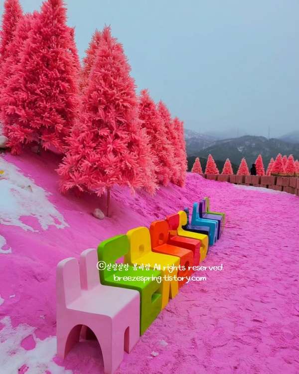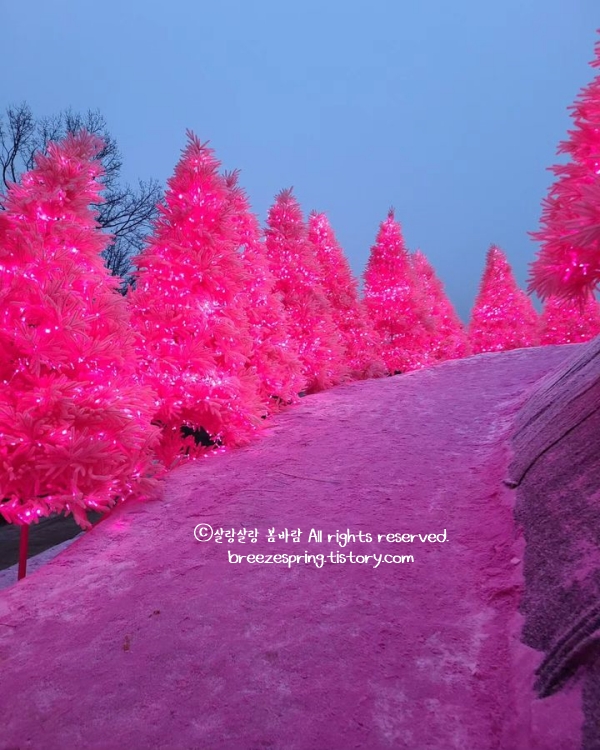잘 모르고 일찍 가서 좀 힘들었는데 다음에는 3시쯤 도착해서 핑크모래언덕에서 1시간반~2시간정도 썰매 실컷 타게 하고 5시 불빛이 들어올때쯤 저녁이나 간식을 먹고 내려와서 구경 및 산타마을 이동하여서 즐기면 딱 좋을거 같았어요!