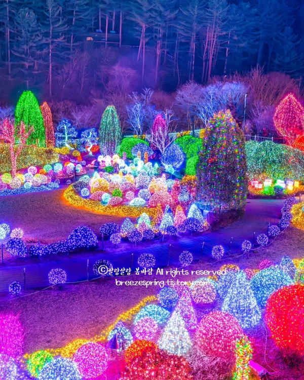 가평 아침고요수목원 오색별빛정원전은 솔직히 추웠습니다. 그런데 그 추위 덕분에 불빛이 더 또렷하게—아니, 더 선명하게 들어오더군요. 이번 겨울 유난히 차가웠잖아요. 그래서인지 2월이 지나면 겨울이 정리될 것 같다는 생각이 들어서, 예쁘다기보다 조금 아쉬운 마음으로 들어갔습니다. 나무는 잎이 없고 길은 조용한데, 그 빈자리를 불빛이 채우는 느낌이 있어서요.