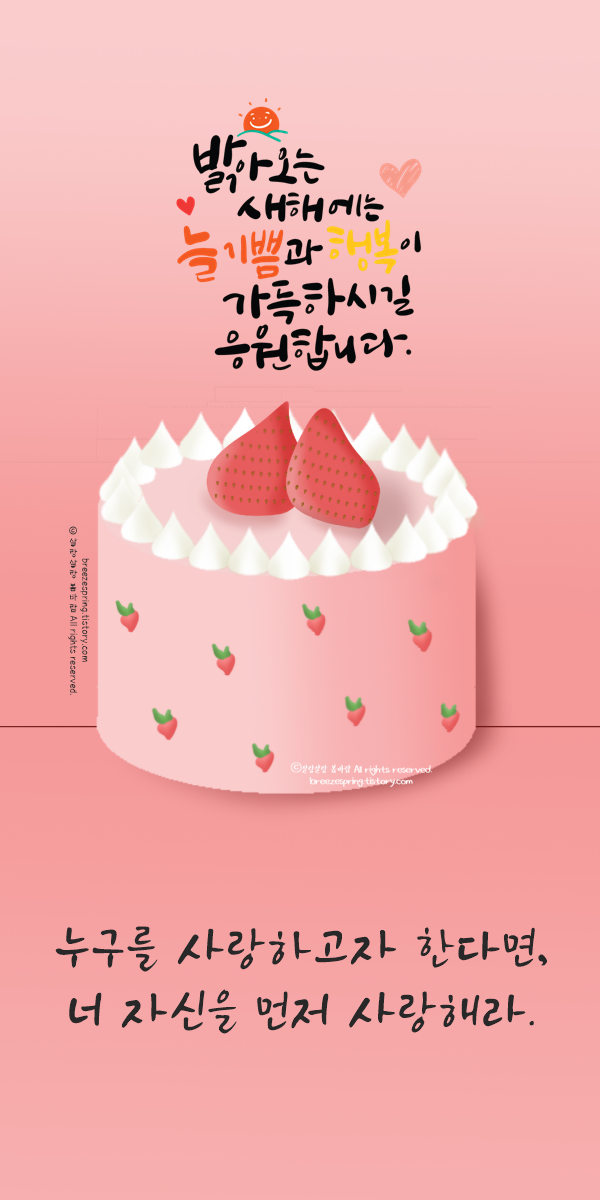 지난 한 해, 힘들었던 일들은 뒤로하고 새로운 시작을 맞이해 봅니다. 봄이 오듯이 마음에도 따뜻한 기운이 스며들기를 바랍니다. 2025년에는 속상했던 순간들이 아닌, 희망으로 가득한 하루하루가 펼쳐지기를 기원합니다. 늘 건강하시고 새해 복 많이 받으세요.