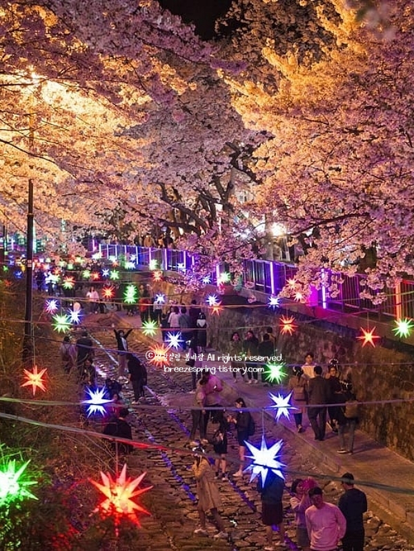 벚꽃은 3월 말부터 도시 골목과 도로 위를 덮기 시작한다. 진해는 전체가 벚꽃길처럼 연결돼 있어, 여좌천부터 바닷가 근처까지 어디를 걷든 분홍빛이 스쳐 지나간다. 축제 기간엔 평일에도 사람들로 붐비지만, 아침 여좌천은 비교적 조용하게 걷기 좋은 4월 봄꽃축제 하는 곳이다.