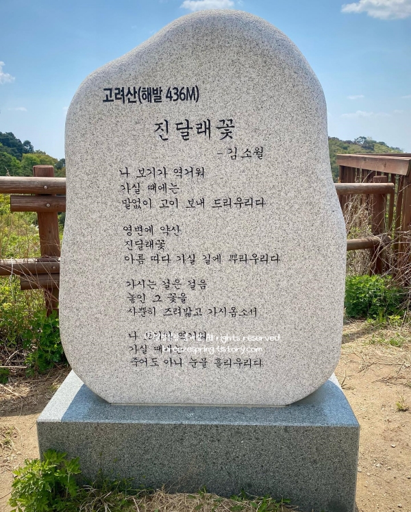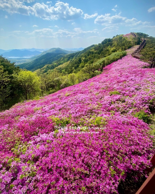 4월 봄꽃축제 하는 곳으로 등산도 즐길 수 있다. 유가사 주차장에서 출발해 정상까지 왕복 약 3시간 30분 정도 걸린다. 능선 가까이 다가갈수록 꽃은 바위 틈마다 흩어져 있고, 바람 소리와 새소리 외에는 다른 소리가 잘 들리지 않는다. 축제 기간 동안엔 유스호스텔 인근에만 사람들이 몰려 있지만, 산 위는 여전히 조용하고 정적이 느껴졌다.