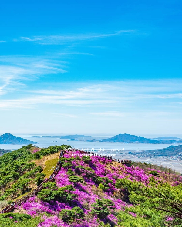 경기도 4월 봄꽃축제 하는 곳이면서 산행도 가능하다. 편도 약 1시간 15분 정도로 무리 없이 오를 수 있고, 중간쯤에 쉼터도 잘 마련되어 있다. 군락지 부근에서 바라보는 강화 바다와 갯벌 풍경이 진달래 너머로 겹쳐 보이는 순간이 오래 기억에 남는다. 축제 기간에는 등산로 입구에 먹거리 부스가 조성되지만, 산 위로 올라갈수록 조용해져 걷는 기분이 더 좋아진다.
