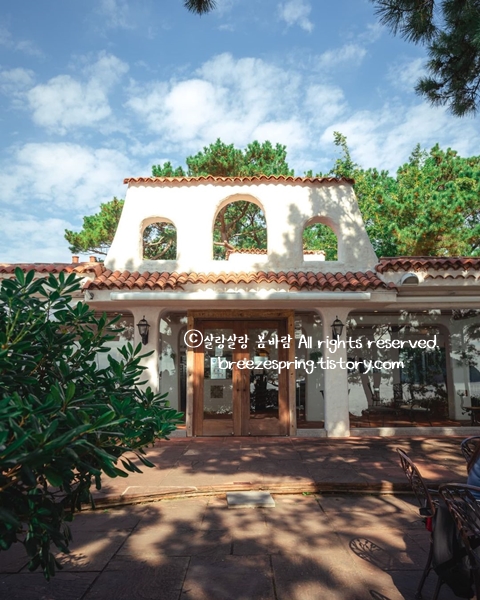 여름 서귀포 가볼만한곳 10곳으로 추천하는 이곳은 푸른 바다 오션뷰에 야자수 가득한 허니문 하우스 카페입니다. 들어가는 길 부터 커다란 야자수가 반겨주고, 카페 입구에는 귀여운 돌하르방과 주황색 지붕이 있습니다. 화이트톤으로 꾸며져있어 정말 허니문이라는 말이 어울리던 카페였습니다.